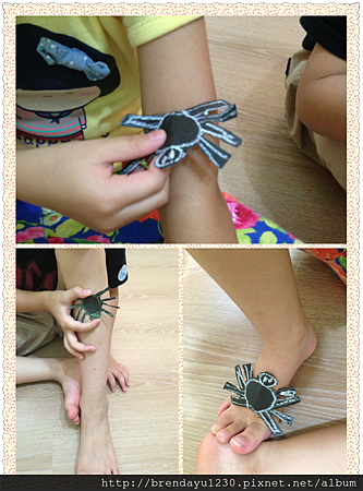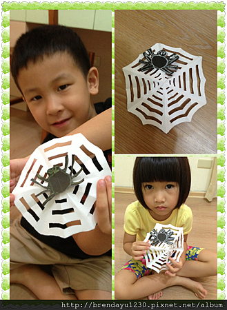 也有讓大小還用剪紙得方式剪出spider web,然後將先前剪的spider黏上去。