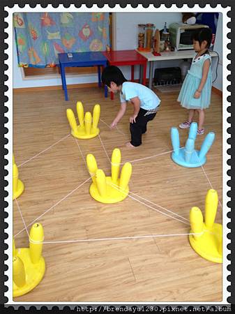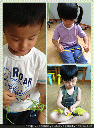 讓大小孩子用毛線繞竹籤,完成spider web。
